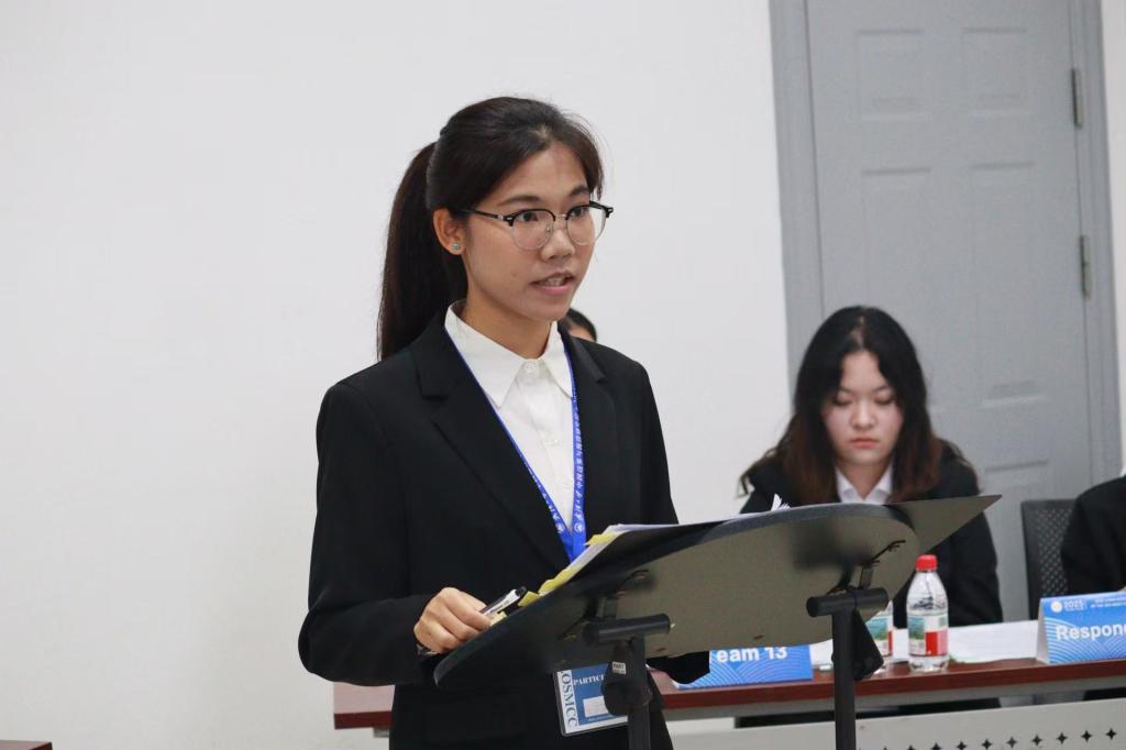 的对决中,队员们针对管辖权争议与海底电缆问题展开了精彩的攻防;在对阵天津工业大学时,我方队员灵活应对法官的犀利提问,逻辑严密、据理力争,充分展现了海大学子扎实的英语功底和敏锐的思辨能力。