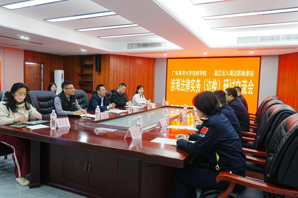 副院长刘澍教授带队到湛江市出入境边防检查站调研,随行人员包括湛江市委党校汤晓龙副教授、海洋法与国际法学系主任张艾妮、海洋法与国际法学系副主任曲明姬以及海大协华曾耿滨、叶春华、杨健永。湛江市出入境边防检查站党委委员、副站长王康接待了此次调研,并主持了座谈会。